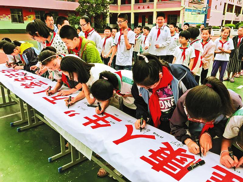 秋季開學伊始,洛南縣城關派出所以創建﹃無毒社區、無毒村、無毒單位、無毒校園﹄為目標,深入轄區學校開展法制禁毒宣傳教育進校園活動,城區各中小學師生共一萬余人參加,發放宣傳資料六千余份。(石軍平 攝)