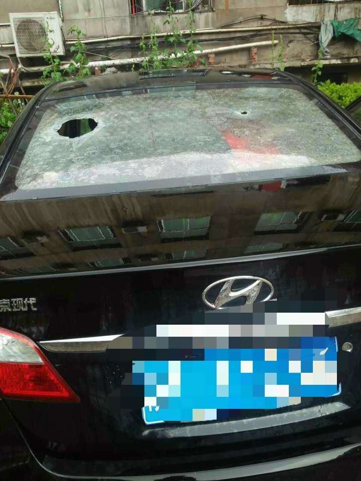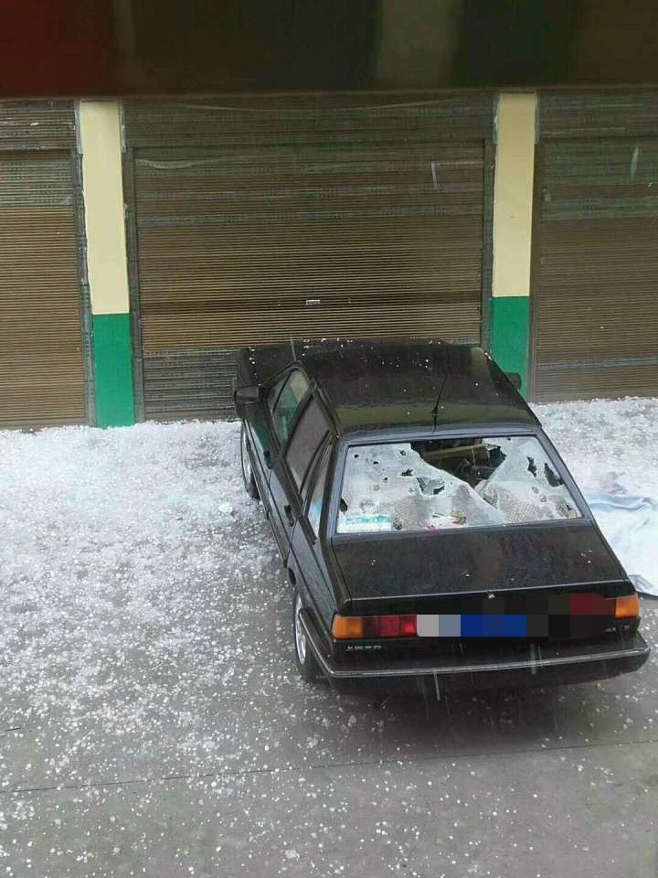 陜西商南縣突降特大冰雹 汽車車窗被砸碎
