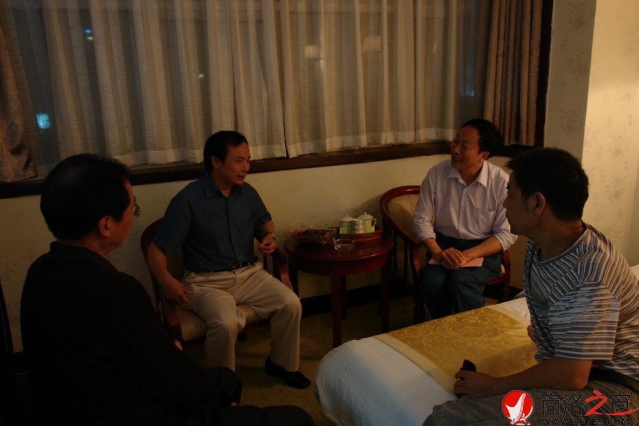 26日晚商洛日報社社長何鄧、總編輯劉少鴻、廣告經營中心主任張志宏與中國地市報工作委員會秘書長呂道寧討論會議議程及安排情況