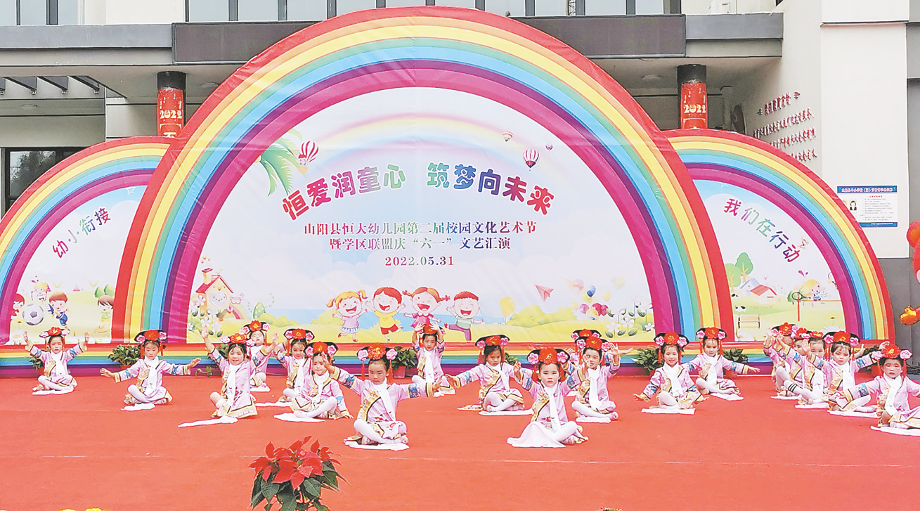②5月31日,山陽縣恒大幼兒園舉行以“恒愛潤童心、筑夢向未來”為主題的慶“六一”文藝匯演活動,迎接“六一”兒童節的到來。 (本報記者 李 敏 攝)