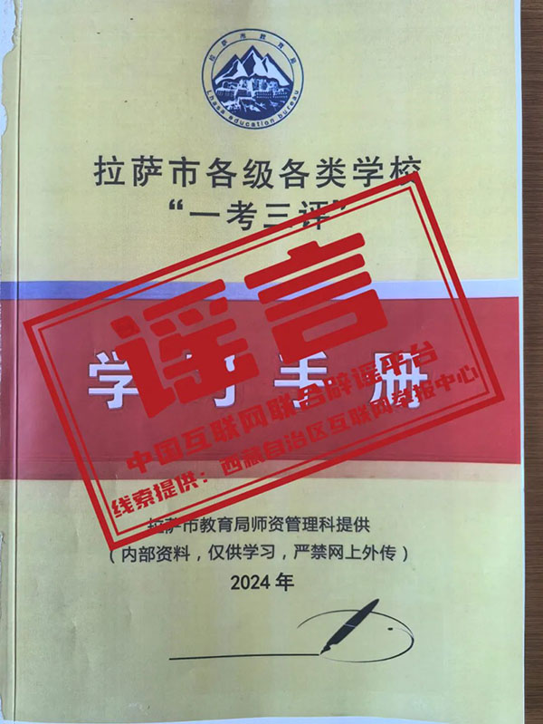 詳情:近期,西藏自治區拉薩市教育局接到教師反饋,稱有人以拉薩市教育局師資管理科名義,以50元/本的價格,售賣2024年《拉薩市各級各類學校“一考三評”學習手冊》。對此,拉薩市教育局發布辟謠聲明稱:我局2024年未印發“一考三評”學習手冊,未委托任何機構和個人以任何形式向教師售賣2024年《拉薩市各級各類學校“一考三評”學習手冊》。請廣大教師保持高度警惕,不信謠、不傳謠、不造謠,謹防上當受騙。(來源:“西藏舉報”微信公眾號、“拉薩教育”微信公眾號)
