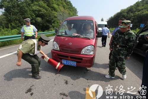 本網(wǎng)訊(記者 方 立 攝) 7月26日上午10時(shí)10分,商南“7·24”特大水災(zāi)造成縣城西郊一段高速公路懸空,公安干警、武警官兵緊急搶險(xiǎn)。一輛車號(hào)陜H-15909小面包車,違章強(qiáng)闖安全警戒區(qū),輾壓多個(gè)警戒隔離墩。大災(zāi)官兵搶險(xiǎn),小車冒險(xiǎn)搶道,好險(xiǎn)、好牛!