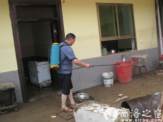 災后防疫。圖為湘河鎮工作隊對受災區噴灑消毒藥劑