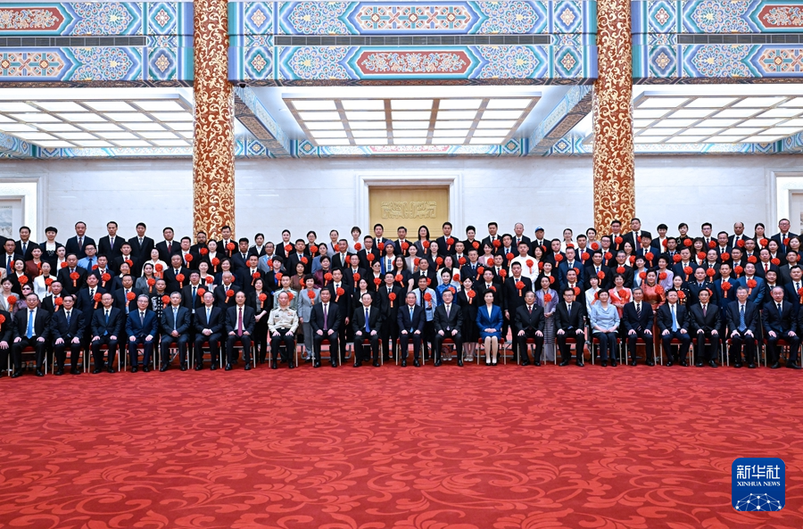 會前,中共中央政治局常委、國務院總理李強會見大會代表并同大家合影。