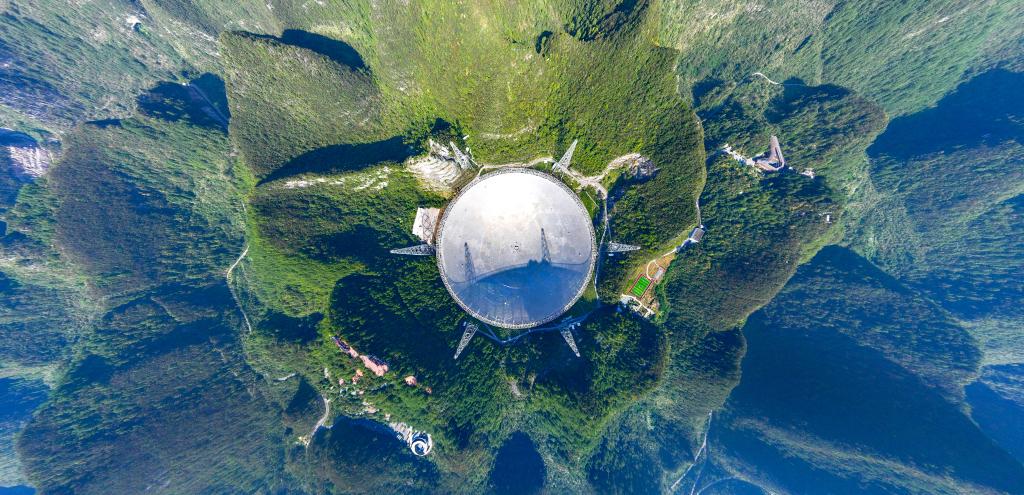 這是2024年9月25日拍攝的“中國(guó)天眼”全景(無(wú)人機(jī)照片,維護(hù)保養(yǎng)期間拍攝)。 新華社記者 歐東衢 攝