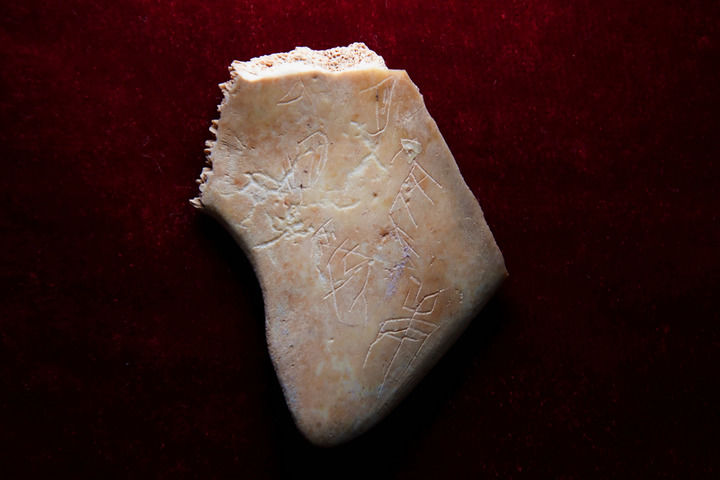 陜西寶雞周原遺址出土的刻辭甲骨(2025年2月25日攝)。新華社記者李一博攝