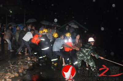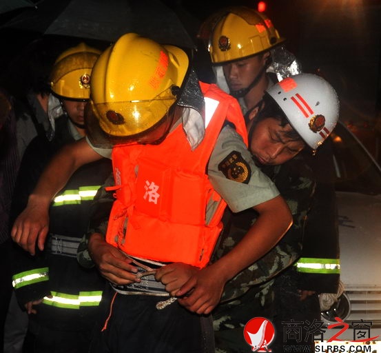 本網訊(程明輝 高軍軍)8月24日晚9時許,山陽縣甘溝口村廟溝橋頭道路突然塌陷,導致一輛正常行駛的出租車失控栽進河中,被暴漲的山洪沖出了十幾米遠,車內3名人員受困,情況萬分危急!接到報警后,山陽公安消防大隊立即出動,15名消防官兵攜帶所需救援器材,火速趕赴事發現場救援,他們和群眾一起成功救出車內被困人員,并將出租車打撈了上來。