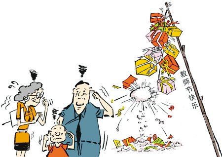 網(wǎng)友“臨窗對雨”的一片博文寫出了不少老師的心聲。“每到教師節(jié),學(xué)生的祝賀卡片像雪花一樣飛來,自然是滿懷喜悅??墒?,我也總是為家長送來的禮物而苦惱。總會面對喜歡送禮的家長,盡管有些家長幾年來沒有向我送過一件禮物,我也會對他的孩子一視同仁。”他說,做教師最大的快樂,是得天下英才而育之。而最大的欣慰,莫過于多少年以后,當(dāng)初你教育過的學(xué)生依然深深地記住你這位老師。而家長的禮物,卻在其中扮演著極不光彩的角色。