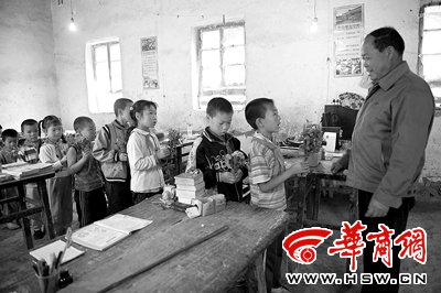 王杰是商洛市商州區(qū)麻街鎮(zhèn)五星村窯坡初小四年級(jí)班長(zhǎng)。他說:“我們這里沒有商店,買賀卡要到山下走10里路,沒時(shí)間去,我就和同學(xué)王明晨商量采野花,采回來后再分給每個(gè)同學(xué),分別送給李老師,并說上一句祝福的話,不許學(xué)樣重復(fù)說。”