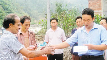 本網訊(張紅中)中秋前夕,商南縣十里坪鎮為李家灣村因受災成為“三無戶”的村民劉則民、劉則文送去月餅,并將鎮計生辦、財政所、衛生院干部和李家灣村、十里坪村、紅巖村群眾自發募捐的8850元善款交給兄弟二人,幫助他們渡過眼前難關。