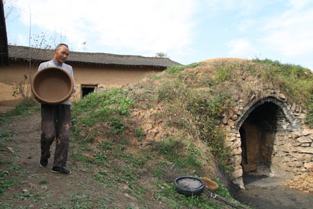 洛南縣景村鎮(zhèn)王山溝村,至今還留有兩口窯,郝悶長是本村人,自18歲開始跟著父輩學習制陶,已經(jīng)30個年頭。
