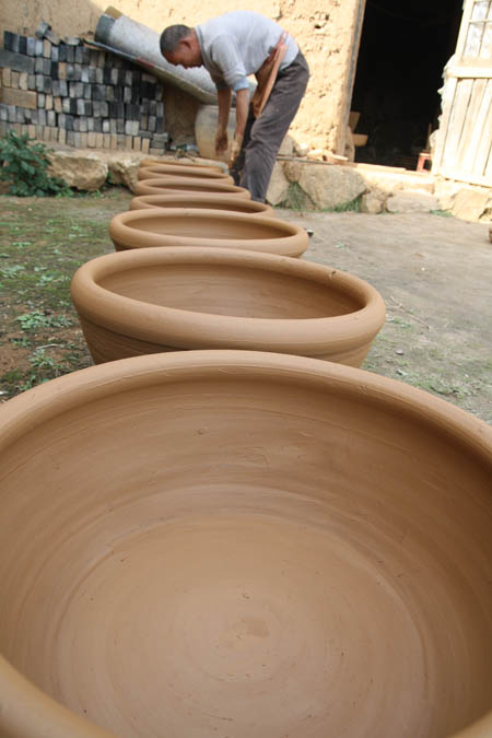 郝悶長告訴記者,每天能做10個盆子,每個盆子能賣7、8元,現(xiàn)在多是外地人上門收購,本地人買的并不多。以前生意還好,瓦罐、陶盆、砂鍋等都能做,隨著社會的發(fā)展,現(xiàn)在搪瓷、玻璃、不銹鋼等器具慢慢將陶瓷代替。如今大都做的是陶盆,用作孝子盆。