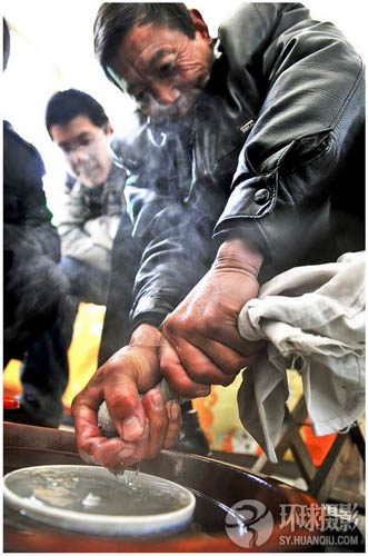 有經(jīng)驗的淘金師傅正在過濾把從河道里篩出的砂金,這個關鍵工序一般是老板的“自己人”來操作