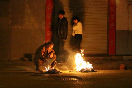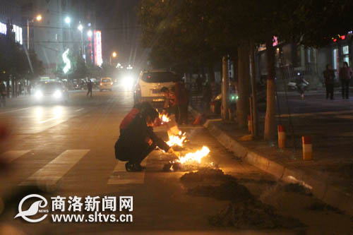 農(nóng)歷十月初一,民間有“十月一、送寒衣”的習(xí)俗,也就是說人們要給已故親人送去“寒衣”。11月5日晚上,在商洛市北新街、工農(nóng)路、州城路、名人街、移動(dòng)路、團(tuán)結(jié)路等多條街道,許多市民紛紛為已故的親人燒紙,數(shù)不盡的紙灰遍布街道兩旁,剛在昨天經(jīng)歷了省考核驗(yàn)收團(tuán)創(chuàng)衛(wèi)考核驗(yàn)收的潔凈街道今晚紙灰飛揚(yáng),變成許多市民的祭拜場。