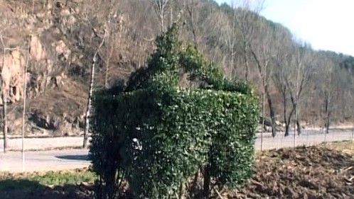 說起房子,大家都會想到瓦房、磚房甚至是石頭房子,可是您見過植物搭建的房子嗎?昨日,記者在洛南縣麻坪鎮娘娘廟村村民老袁家門前就見到了一個由黃楊樹修剪而成的“房子”。