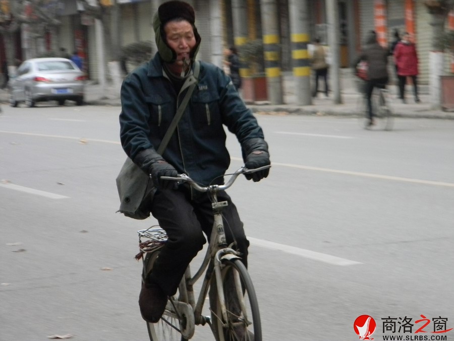 12月15日,拍攝于商州北新街西段,在寒風(fēng)中騎自行車(chē)趕路的市民。
