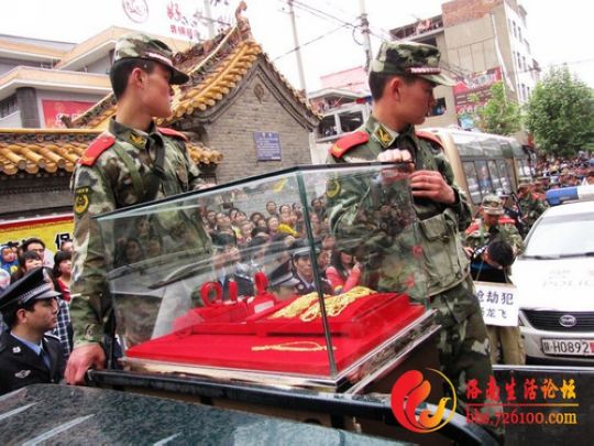 5月9日14時25分,兩名青年男子手持砍刀、斧頭闖入位于洛南縣城中甫街中段的“皇寶金店”,砸爛柜臺玻璃,搶走金手鐲6只,千足金項鏈59條,18K金項鏈47條,總價值近60萬元。