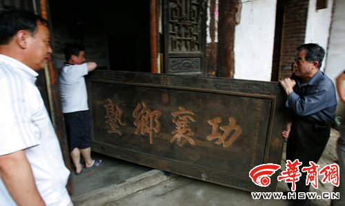 屈家后代將藏匿在老宅子里的牌匾抬出來
