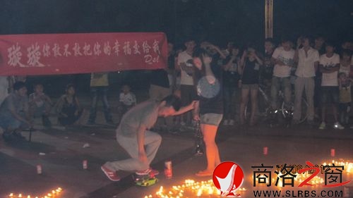 本網訊 (記者 王濤)近年來,隨著社會的開放,我市青年人也追趕著時尚。八月十八日晚,在商洛市丹鶴樓廣場上,一對年輕的情侶上演浪漫求婚。他們用蠟燭、氣球、煙花……將現場點綴的浪漫而溫馨,吸引了不少市民圍觀。