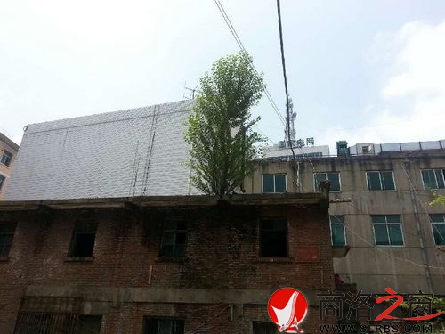 7月15日,記者來到這個小院里,剛走進(jìn)院子,抬頭就看到這棵長在廢棄小二層樓房頂上邊靠近樓檐地方的楊樹。與我們平時看到的楊樹不同的是,它有兩根主干,周圍許多小枝成傘狀散開,在它旁邊還有一棵筷子粗、一米多高的柳樹。住在附近的李先生告訴記者,10年前住在這里時,這棵樹就長著,期間先后被砍過兩次,后來又長上來,生命力特別頑強,現(xiàn)在樹根估計都延伸到了樓下。當(dāng)問其知不知道為什么樓房頂能長出來這么大棵樹時,他分析說,可能是當(dāng)時硬化樓頂?shù)臅r候,里面加有鋸末,比較適合樹生長。