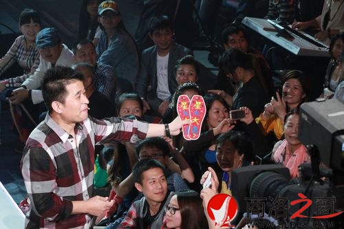 畢福劍給觀眾介紹孫培龍母親做的“星光大道”字樣的鞋墊