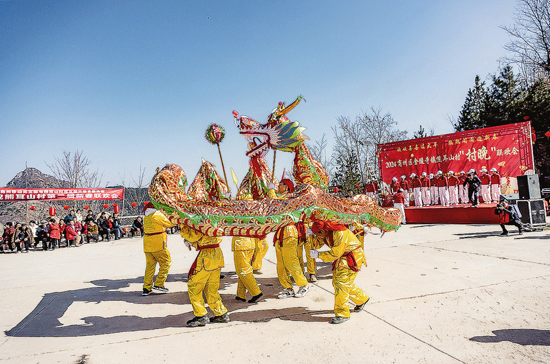 2月17日,商州區金陵寺鎮熊耳山村舉辦“村晚”聯歡會,演出的廣場舞、原創快板、變臉、秦腔等節目吸引了1000多名村民和游客觀看,豐富了春節期間群眾文化生活,進一步宣傳了熊耳山旅游資源。 (本報記者 楊 鑫 攝)