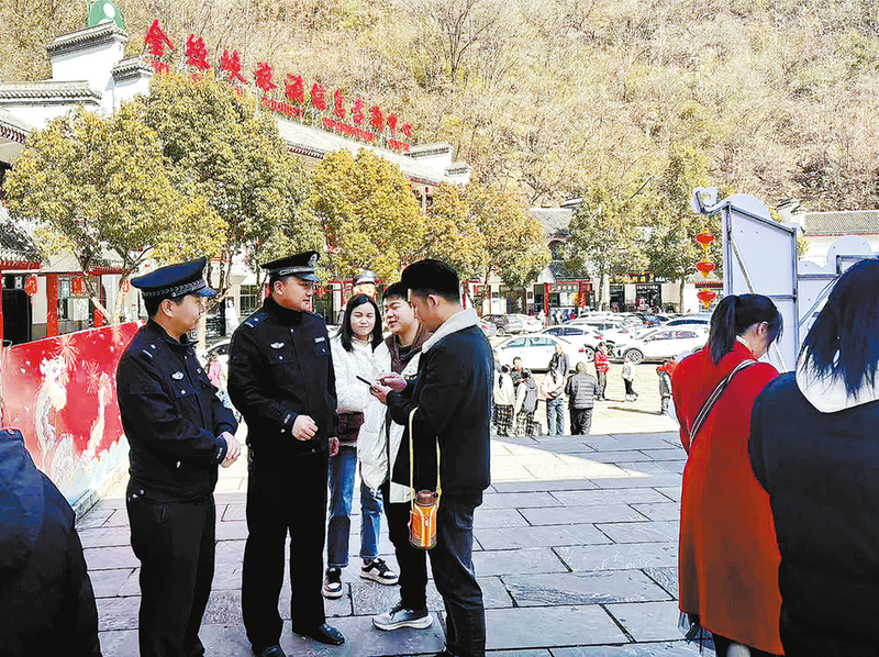 2月16日,商南縣公安局金絲峽派出所民警加強景區(qū)人流秩序疏導(dǎo)和周邊治安巡邏防控。