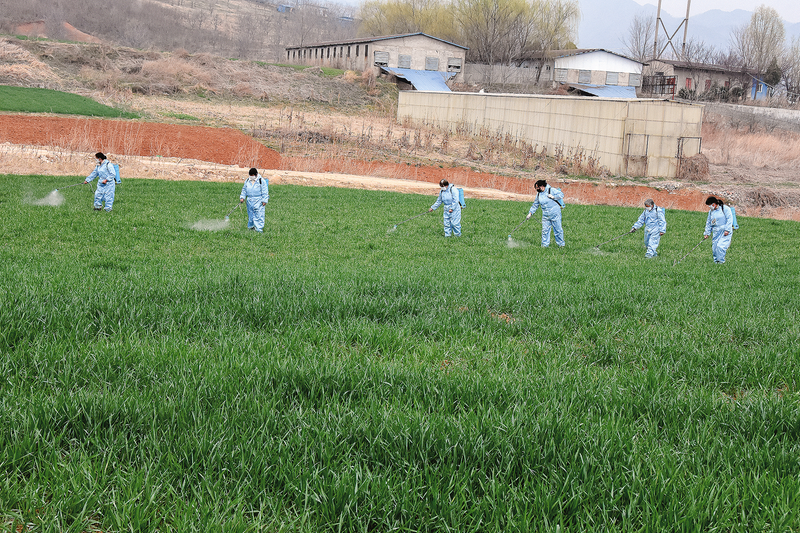 3月12日,丹鳳縣農(nóng)技中心、丹鳳縣老科教協(xié)會(huì)組織專業(yè)技術(shù)人員,在龍駒寨街道古城村古城嶺小麥集中種植示范區(qū)開展麥田化除防治示范活動(dòng)。目前,全縣化除防治麥田超過1000畝。 (本報(bào)通訊員 劉春榮 攝)