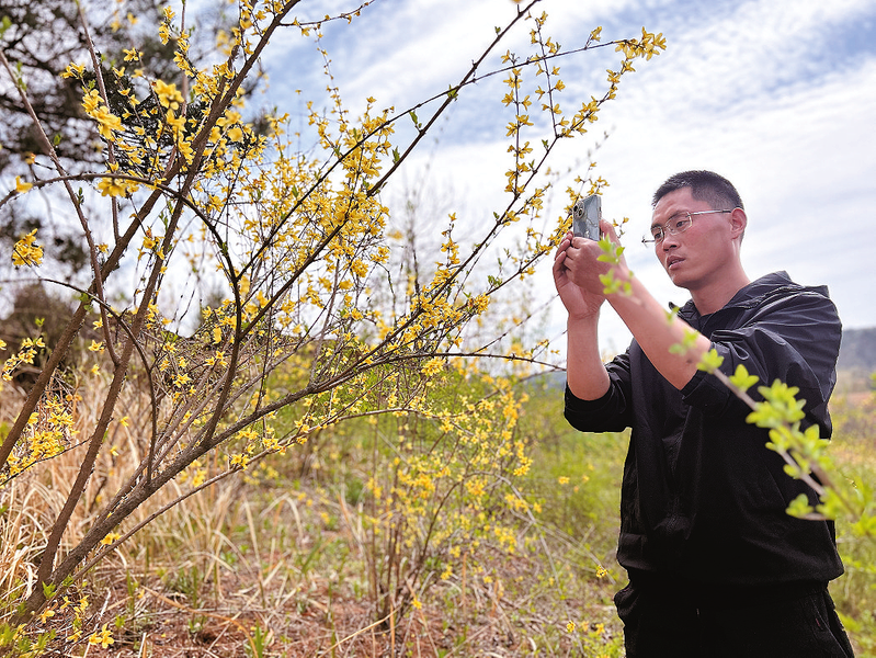 “三月春光無限好,庭院連翹金輝耀。連翹屬多年生落葉灌木,花期在3到4月,開花時香氣淡雅,滿枝金黃。它的果實可以藥用,秋季果實初熟尚帶綠色,蒸熟曬干者稱為青翹,果實熟透采收者稱為老翹。”