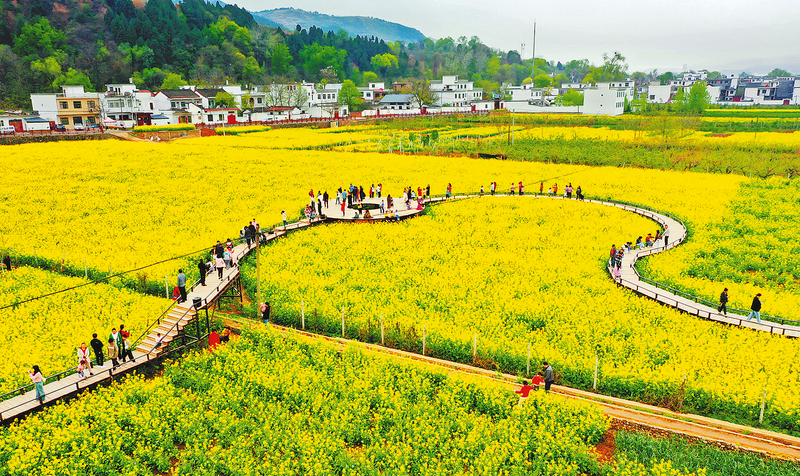 走進山陽縣秦嶺原鄉農旅小鎮法官鎮姚灣社區,金燦燦的油菜花層層疊疊,高低開放、錯落有致,為春天平添了一抹浪漫色彩,也為當地經濟注入了新的活力。據悉,每天前來觀賞油菜花的游客有1000多人,僅清明節小長假3天游客達4.35萬人次。油菜花盛開以來,周邊餐飲、住宿等收入共計達400多萬元。