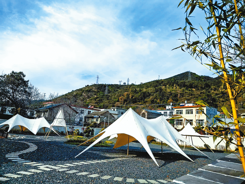 坐落在老街的武關糧站,曾是明清時期的巡檢司衙門所在,偌大的場地早已閑置。指著那座巨大的廢棄糧庫,李昱澎說:“這個糧庫占地480平方米,縣文旅局規劃將其改建成武關歷史陳列館。糧庫對面廢棄的原糧站職工宿舍,我們想將其改建成現代鄉村民宿,取名‘武關驛站’。毗鄰糧站那塊空地足有2000多平方米,我們已在那里建成了戶外露營基地。”不遠處,鋪著砂石的空地上,錯落有致地搭建著大小不一的帳篷。仿古磚砌成的圍墻環繞四周,還栽種著竹子和其他綠植。