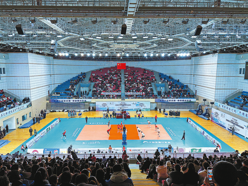 2月4日,2024—2025全國中學生排球區域聯賽總決賽在我市開賽。在舉行的揭幕戰上,南京市玄武高級中學隊分別以25:20、25:17戰勝南昌中學隊,大比分2:0取得首勝。 (本報記者 黨率航 攝)