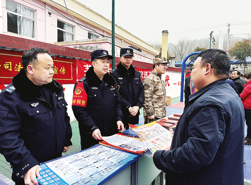 1月23日,鎮安縣公安局茅坪派出所聯手縣司法局茅坪司法所、縣農商行茅坪支行等部門在茅坪中心廣場集中開展反詐宣傳活動。 (本報通訊員 尹 鋼 攝)