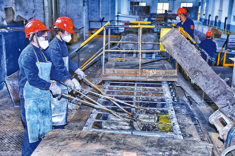 面對(duì)400℃高溫,女職工淡定地完成鋅錠表面預(yù)處理工作。