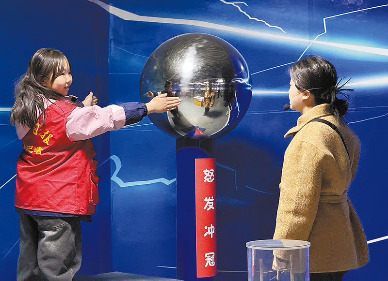 上午9時許,小記者帶著好奇心來到了市科技館,在講解員的引導下,他們首先參觀了“電磁大舞臺”,通過高壓放電演示、磁懸浮實驗等,直觀了解電磁學在生活中的應用。隨后,“機器人大舞臺”上的機器人成為焦點,只見它們跟隨音樂用靈活的機械臂展現出整齊的舞姿,引得小記者連連驚嘆。航天航空展區則點燃了小記者的愛國情懷。長征火箭模型、航母艦隊沙盤、陸軍裝備展示等,系統呈現了中國航天事業的輝煌成就。