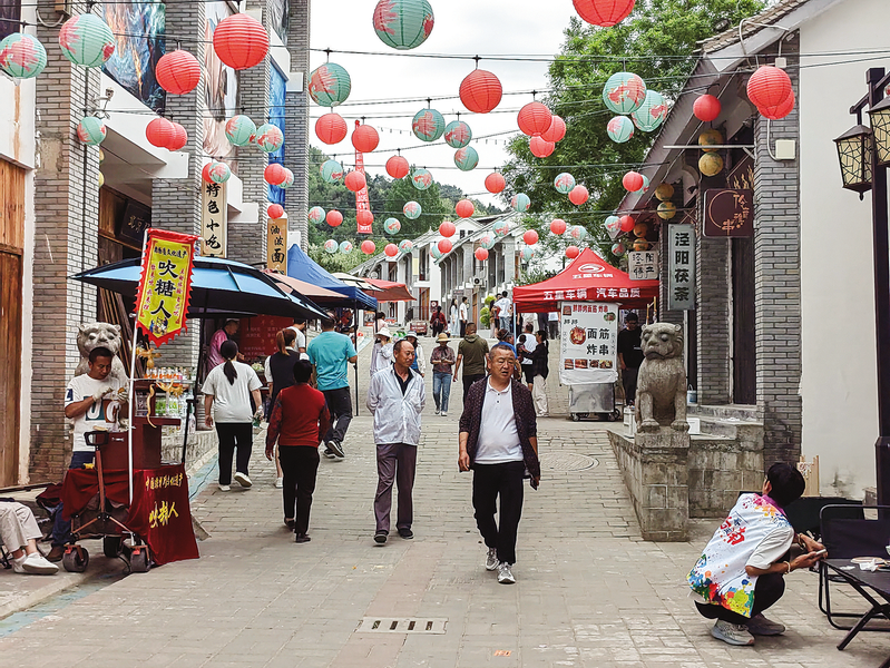 “五一”假期,洛南縣在音樂小鎮、倉頡小鎮和蟒嶺綠道等景區開展形式多樣的文旅展演活動,吸引眾多游客前來打卡旅游。圖為5月5日,游客在音樂小鎮商業街游玩。 (本報通訊員 劉衛鋒 攝)