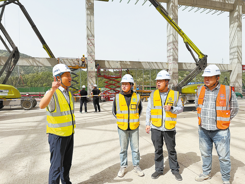 4月30日,時令踏入春夏交替之際,暑氣已悄然升騰,空氣中裹挾著陣陣熱浪,讓人提前感受到盛夏的威力。在商州區楊峪河鎮西十高鐵商洛西站的施工現場,各種大型機械和工人正在火熱地施工中,中鐵建工集團新建西安至十堰(陜西段)高鐵站房工程項目經理李欣正在跟各個施工隊負責人就地開短會,糾正發現的問題。