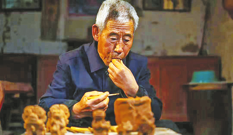 在商州區大趙峪街道龍山村,75歲的陳五斤是這項技藝的守護人,一頭白發見證著歲月的沉淀。走進他家,案頭擺著剛捏好的坯子——只見他左手托泥,右手拇指輕旋,兩分鐘便塑造出一個鼓腹龍首的泥哨,扉牙處三道刻痕。