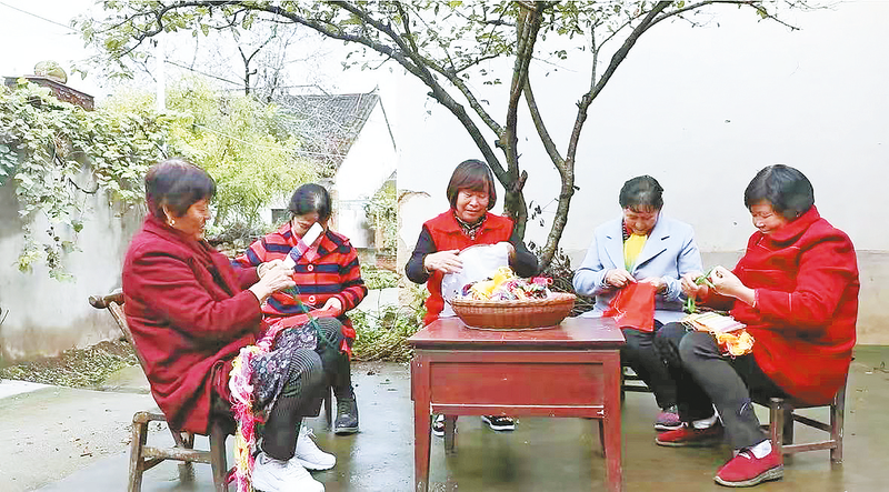 李美榮(中)和鄉(xiāng)親們?cè)谧龃汤C活