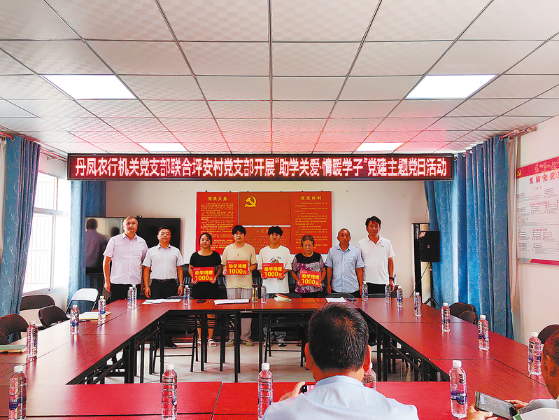 8月20日,丹鳳農行機關黨支部聯合武關鎮坪安村黨支部開展“助學關愛·情暖學子”黨建主題黨日活動,現場資助今秋新入學的4名困難家庭大學生每人1000元。 (本報通訊員 袁漢鋒 攝)