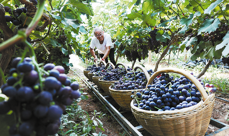 8月9日,在洛南縣永豐鎮李村,葡萄種植大戶李林山在葡萄園內安裝鐵軌運送葡萄,減輕勞動負擔。 (本報通訊員 阮世喜 攝)