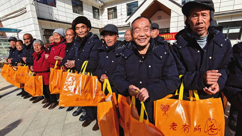 2025年1月8日,商洛彩虹公益中心為山陽縣南寬坪區(qū)域敬老院老人發(fā)放“老有所衣溫暖包”。