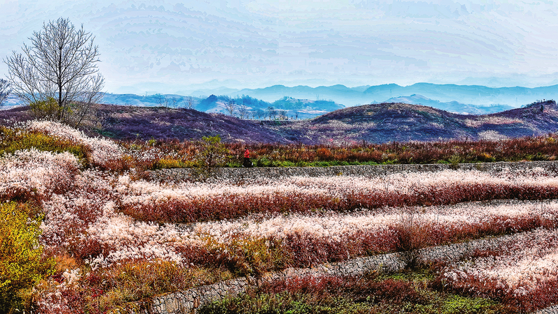 △在商州區(qū)大荊鎮(zhèn),山坡上的蘆葦隨風搖曳,靜謐的山坡因此多了幾分浪漫和生機。