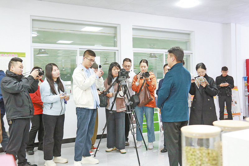 采訪團成員采訪豆農食品科技有限公司負責人,詳細了解公司發展情況。