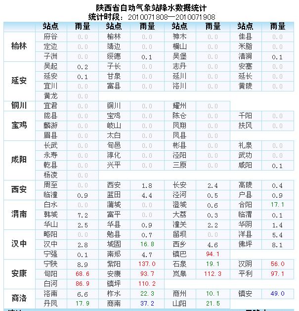 18日08時-19日08時,陜南有9站出現(xiàn)50毫米以上的降水,其中三地出現(xiàn)大暴雨,分別是紫陽137毫米、嵐皋112.3毫米、鎮(zhèn)坪110.2毫米。