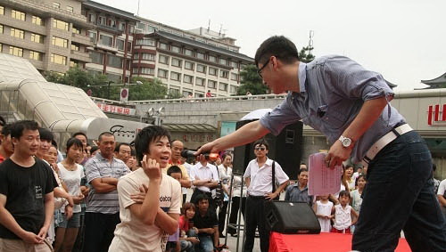 8月13日下午,在西安鐘樓金花廣場(chǎng),牛背梁國(guó)家森林公園上演尋找開(kāi)園“金鑰匙”宣傳巡演活動(dòng)。一位叫楊麗的女孩通過(guò)層層沖關(guān),幸運(yùn)地成為首位拿到“金鑰匙”的游客,獲得在一年時(shí)間內(nèi)免費(fèi)游牛背梁景區(qū)的通票。