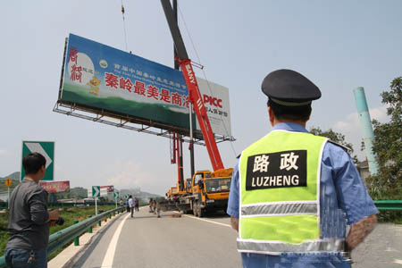 為凈化行車環(huán)境,提升高速公路形象,消除安全隱患,陜西省交通建設集團公司西商分公司商州西管理所于8月26日對三處拒不整改的廣告牌進行強制拆除和清理。