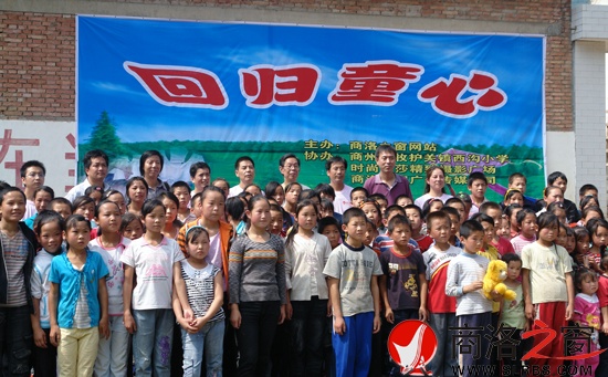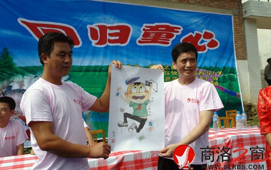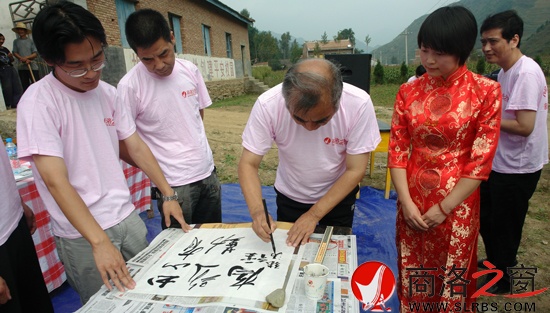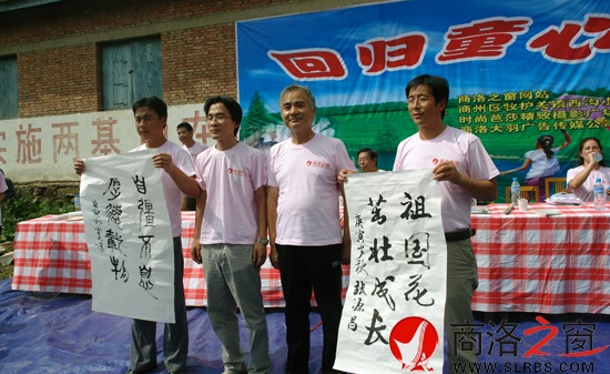 張源昌(右二)、楊峰(左二)先生送給西溝小學老師們的墨寶