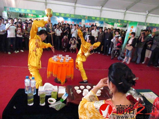 本網訊 4月25日,在安康茶葉節上,我市茶葉企業推出的茶藝表演,吸引了眾多客商、游客,我市參加展評的茶葉企業的“秦嶺泉茗”系列名優新茶受到省內外客商青睞。(記者 王尚鋒 孫傳卿/攝)