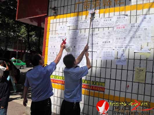 本網(wǎng)訊 (記者 李小龍) 近日,市城管監(jiān)察支隊(duì)組織開展創(chuàng)建城市管理示范街(路)綜合整治活動(dòng),在市區(qū)主要路段設(shè)置非機(jī)動(dòng)車輛停放點(diǎn)100余處,在文衛(wèi)路、安居巷、迎賓路等路段醒目位置設(shè)置“廣告宣傳欄”5處,進(jìn)一步規(guī)范群眾亂貼亂畫、亂停亂放等不文明行為。圖為執(zhí)法人員現(xiàn)場(chǎng)清理廣告宣傳欄。